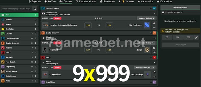 A aposta 9x999 oferece aos jogadores a experiência mais conveniente de apostas em eSports!
